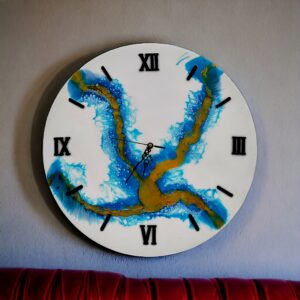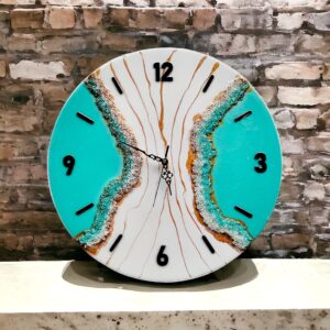 A resin wall clock is a stunning piece of wall décor made using epoxy resin, pigments, and decorative elements like gold flakes, dried flowers, or marble effects. These epoxy wall clocks are stylish, durable, and customizable, making them perfect for modern home interiors. Whether featuring ocean waves, geode patterns, or abstract designs, a resin wall clock adds a unique artistic touch to any space. Ideal for living rooms, bedrooms, offices, and kitchens, these handcrafted clocks blend functionality with aesthetic appeal.