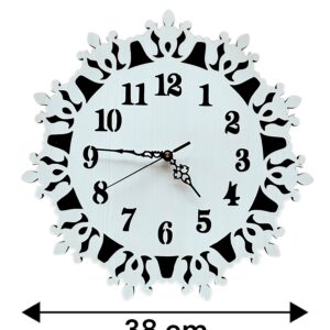 Add elegance to your space with this 15-inch wooden mandala wall clock, crafted from high-quality engineered wood in a stunning brown and white design. Featuring a ticking quartz movement, it ensures accurate timekeeping with a rhythmic ticking sound. Perfect for living rooms, bedrooms, offices, and meditation spaces, this clock blends beautifully with bohemian, modern, and rustic décor. Lightweight and easy to install, it makes a stylish and thoughtful gift for any occasion. Elevate your walls with this artistic and functional timepiece