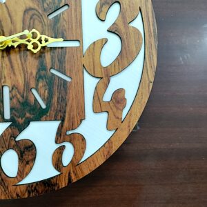 Upgrade your space with this 15-inch wooden wall clock, crafted from high-quality engineered wood with a sophisticated black and white design and a natural wood finish. Featuring a precise quartz movement with a ticking sound, it ensures accurate timekeeping while adding a timeless charm to any room. Its minimalist yet stylish look makes it perfect for living rooms, bedrooms, offices, kitchens, and more. Lightweight and easy to install, this clock blends effortlessly with modern, rustic, and classic interiors. A perfect decorative and functional piece for your home or a thoughtful gift!