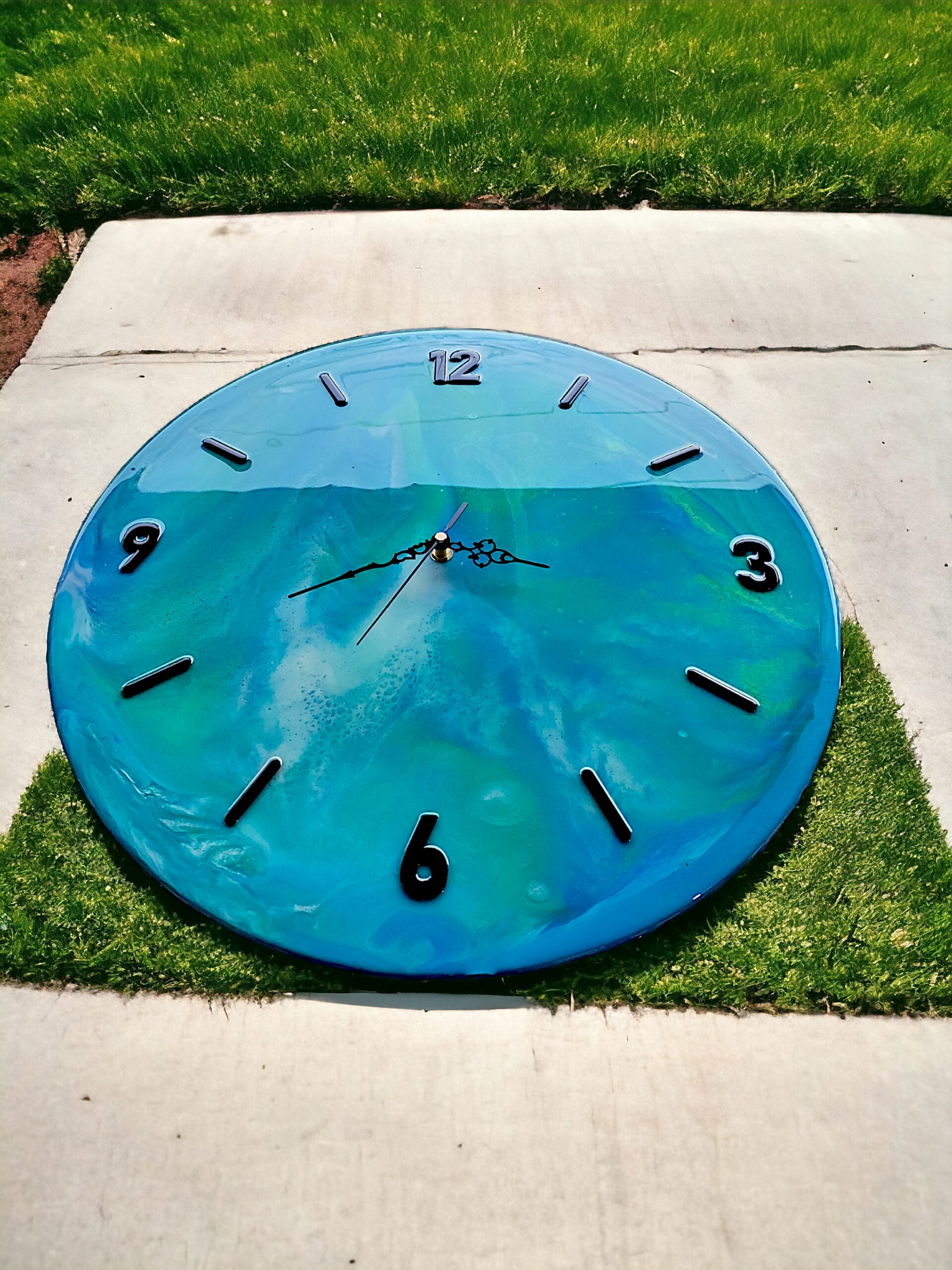 Inspired by the beauty of nature, this wall clock showcases a breathtaking fusion of blue and green, resembling the tranquil hues of the ocean and lush landscapes. The resin finish enhances the depth and texture, creating a stunning visual effect that changes subtly with lighting. Whether you have a modern, contemporary, coastal, or bohemian décor, this clock complements your style effortlessly.