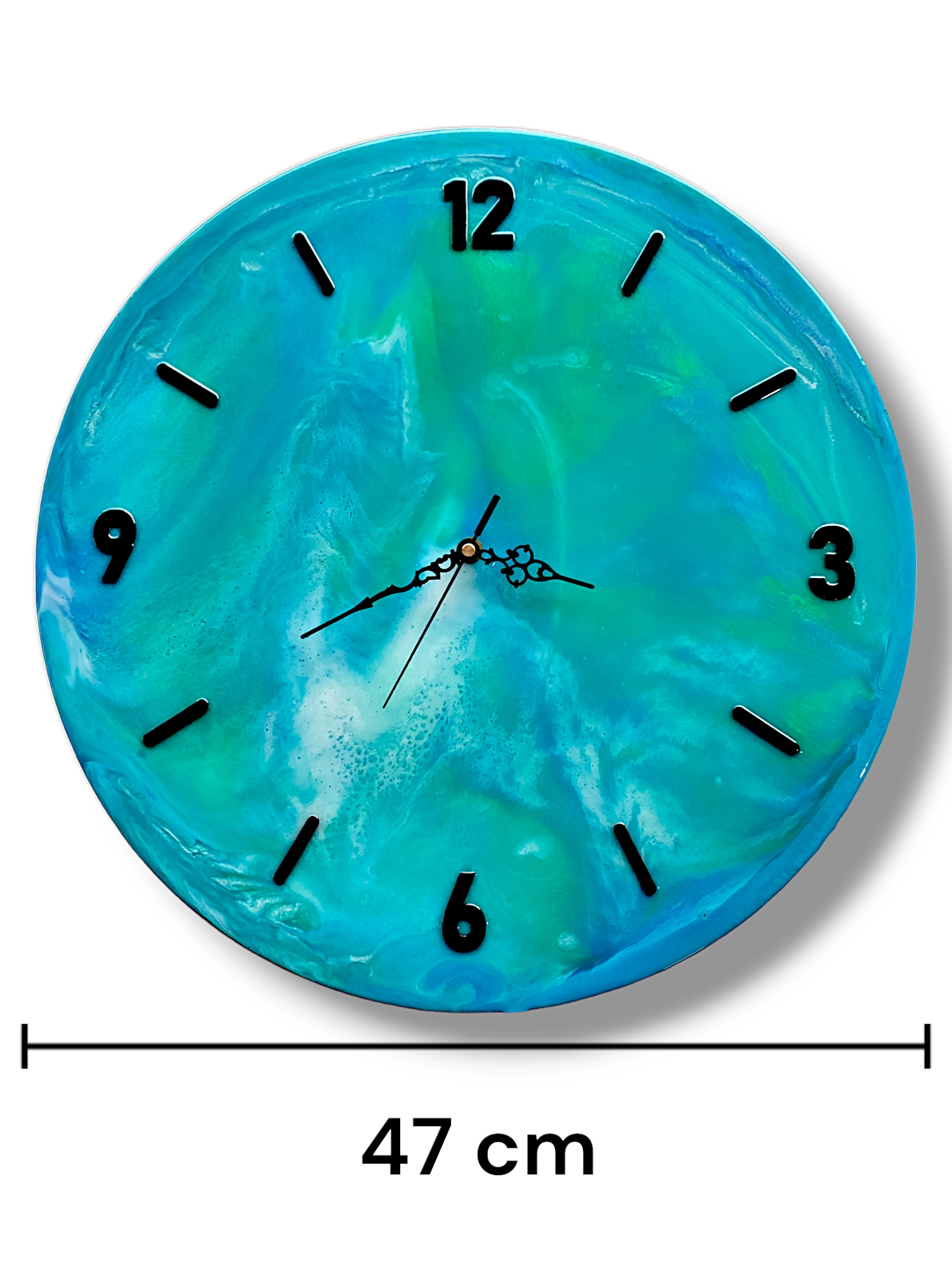 Luxury Resin Wall Clock – 18.5 Inch | Blue & Green | MDF Base with Resin Finish