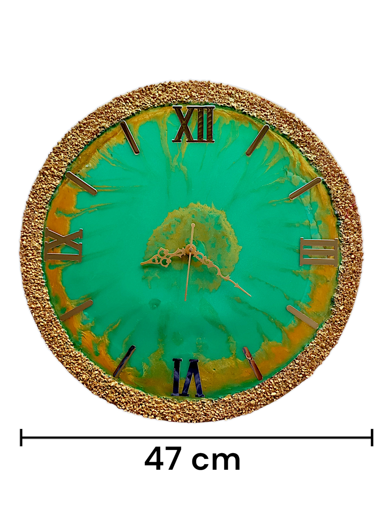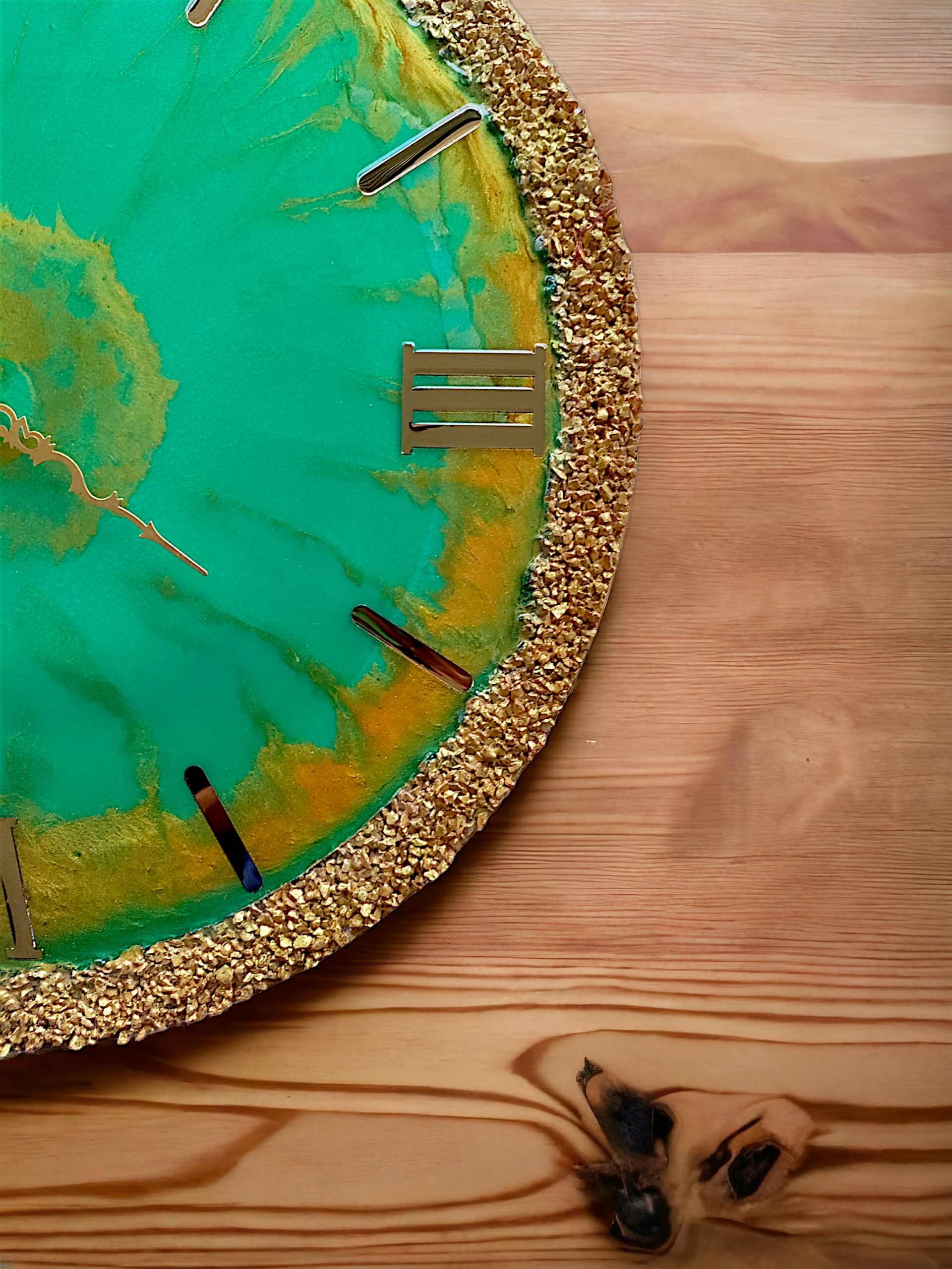 Handcrafted Epoxy Resin Wall Clock – Timeless Beauty in Green & Gold